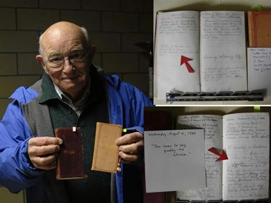 科尔布鲁克历史文化中心已故管理员鲍格和他标记过的卡琳顿夫人日记。图源中央电视台纪录片《幼童》总编导胡劲草