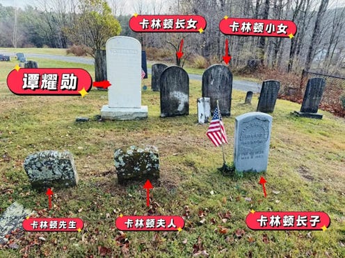 卡林顿家族墓地,谭耀勋的墓碑特别醒目,他躺在了一群爱他的人当中。 徐惠萍制图